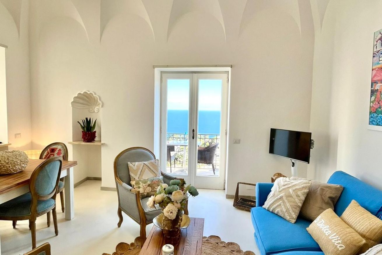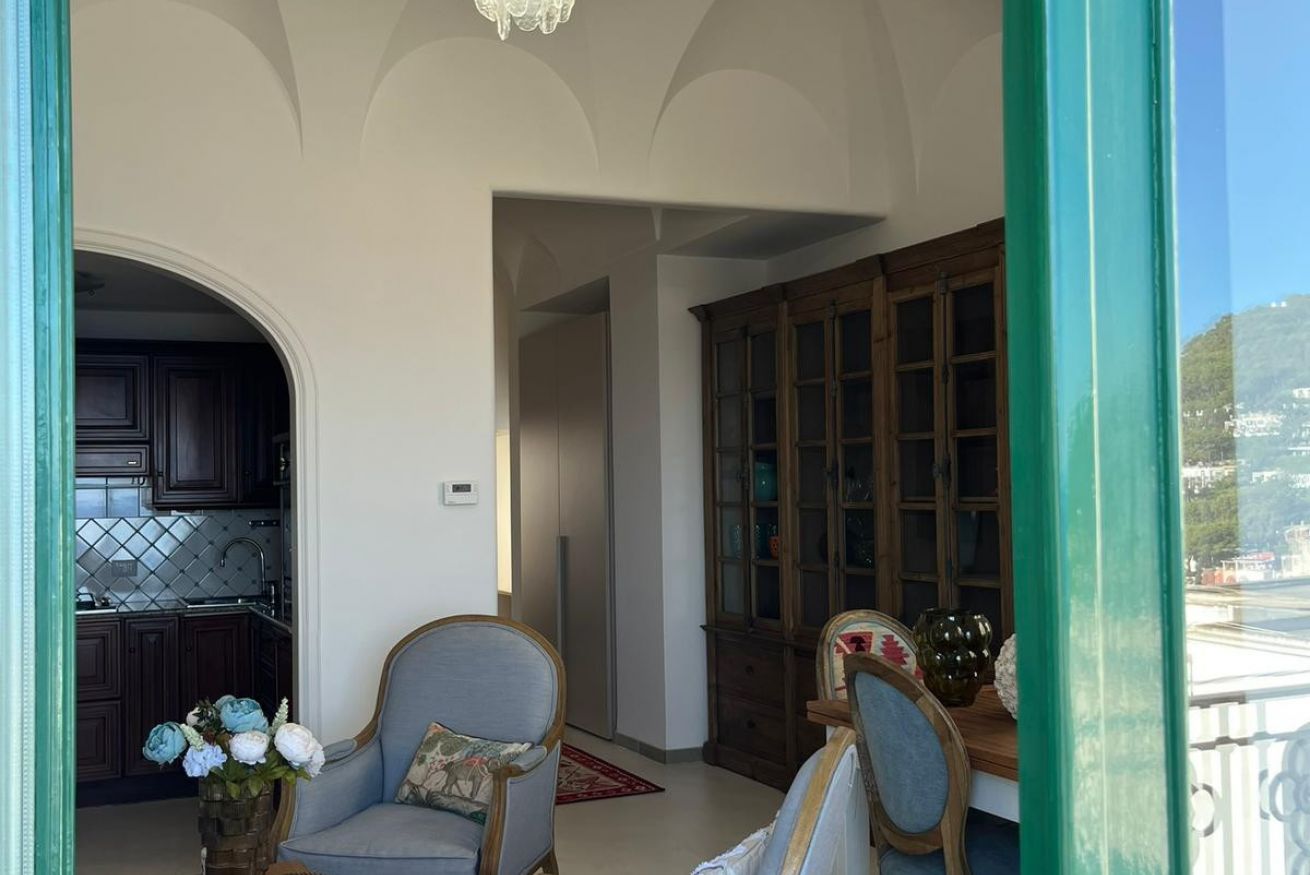 Nel centro di Capri, elegante appartamento con splendida vista mare. Dispone di 1 camera matrimoniale, soggiorno con 2 divani letto e 2 bagni moderni. Posizione ideale per muoversi a piedi tra ristoranti, negozi e le bellezze dell’isola. Perfetto per coppie, famiglie o piccoli gruppi in cerca di comfort e panorama unico.